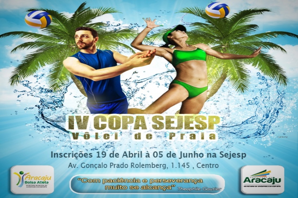 Com a presença confirmada de 18 duplas masculinas de todos os cantos da cidade, a Prefeitura de Aracaju (PMA), através da Secretaria Municipal de Juventude e Esporte (Sejesp), realizará no próximo sábado, 5, a IV edição da Copa Sejesp de Vôlei de Areia. A Praça da Juventude, do conjunto Augusto Franco, será o palco das partidas que prometem esquentar o local com grande incentivo do público.