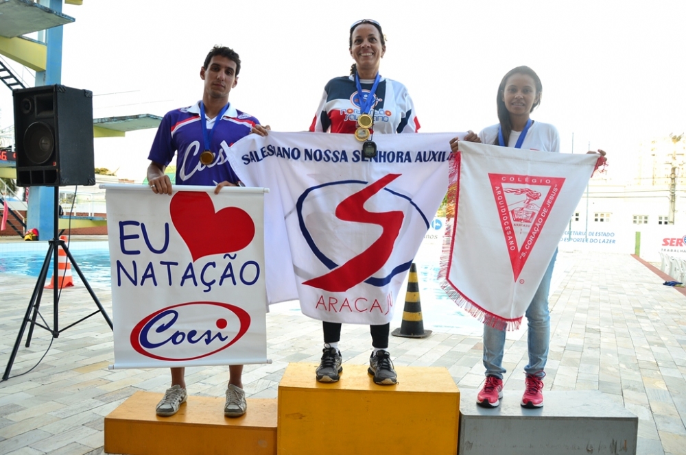 Entre as demais escolas, um dos destaques foi a atleta Vivian dos Santos, do Arquidiocesano. Na competição deste sábado, ela faturou os 50m peito e obteve índice para os Jogos Escolares Brasileiros – JEBS –, competição que a jovem conhece bem: na última edição, a atleta conseguiu duas medalhas de prata nos 100m e 50m peito. “Quero me dar bem por lá de novo”, planeja Vivian, que acabou de chegar de outro excelente resultado: dois ouros e uma prata na seletiva para os Jogos Mundiais Escolares.