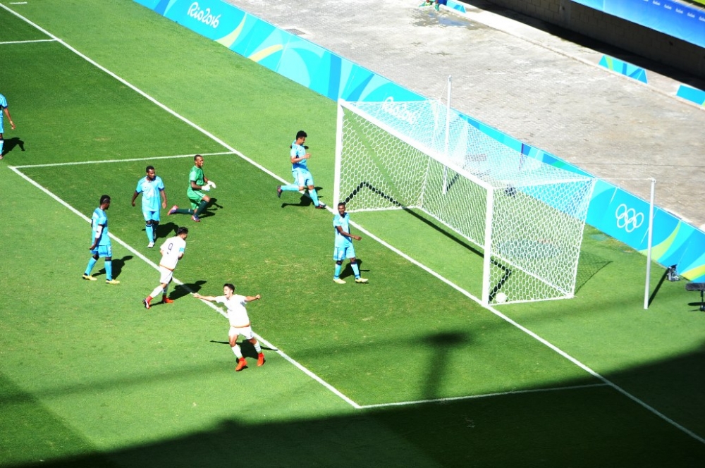 Foi mais ou menos o que todos esperavam. Atual campeão olímpico, o México fez valer sua tradição e pisoteou o fraquíssimo Fiji por 5 a 1 na Arena Fonte Nova neste domingo, 7. Só Gutierrez marcou quatro gols – o que o põe entre os artilheiros dos Jogos. A vitória dá ao México a liderança temporária da chave C do futebol olímpico masculino. Enquanto isso, Fiji continua em último, mas em ritmo de festa: pela primeira vez, o time marcou um gol em um torneio olímpico.
