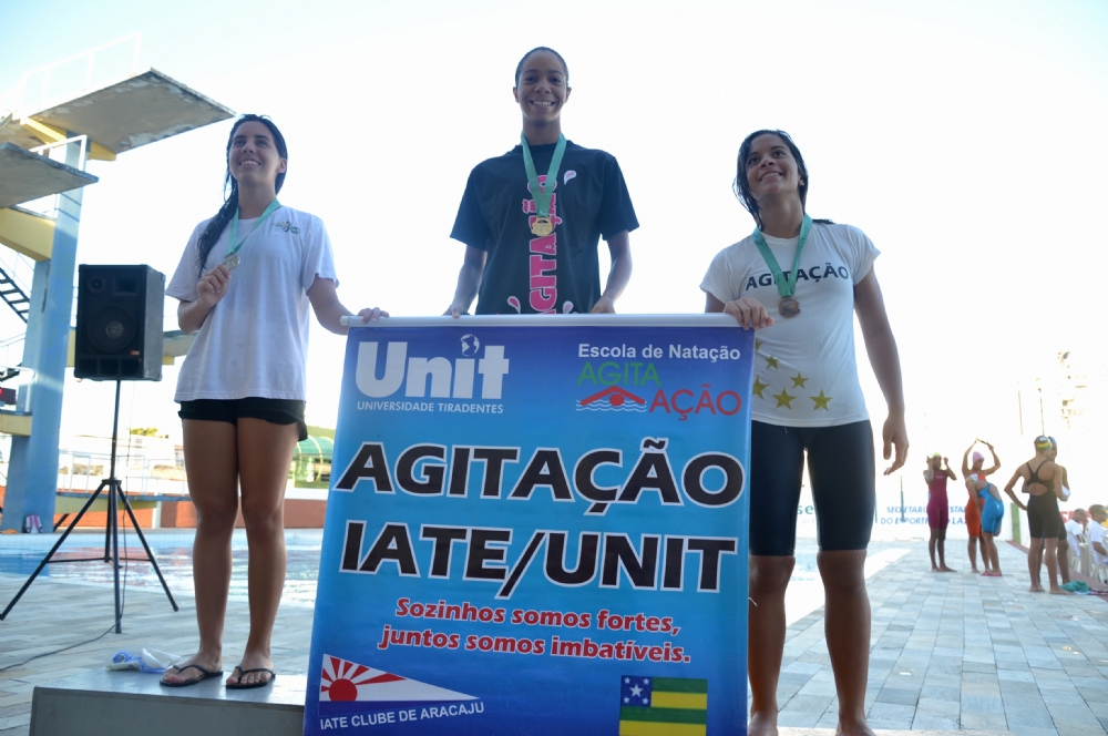 Já o pódio do troféu Wilson Michelato, voltado para a categoria absolutinho, foi completado com Clube Sportivo Sergipe em segundo e Salesiano em terceiro. O troféu Gustavo Laporte, por sua vez, teve pódio com Salesiano na segunda posição e Nad’arte na terceira. Já nas provas, muitos pódios foram formados inteiramente por alunos da Agitação/ Iate/ Unit. Nos 50 metros livre feminino, Rayssa Santana, Viviane dos Santos e Nayna Barreto ocuparam a primeira, segunda e terceira posições respectivamente – todas elas integrantes da equipe vencedora. Nos 200 metros peito feminino, o pódio ficou entre Vivian dos Santos, Bianca Almeida e Sanny Marques, também atletas da Agitação.
