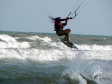 Vivian Melo pratica o esporte hà quatro anos e chega a ficar quatro horas direto dentro do mar. “O mais difícil é controlar a pipa para que ela não te levante no momento em que você não quer”, revela.