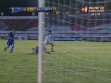 Aos 31 minutos não teve jeito: após inversão de bola, Adriano veio por trás da defesa e chutou no canto de Rodrigues, sem chances. Bahia 2 a 1 Confiança.