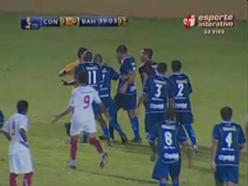 Gol de pênalti do Bahia tirou o foco do Confiança que não se recuperou na partida (Imagens: Reprodção Esporte Interativo)