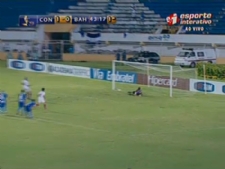 Com 23 minutos, o atacante Aleílson, do Bahia, corta com a bola da esquerda para o meio em cima do zagueiro azulino, manda a bomba que tinha endereço certo, mas Rodrigues fez uma grande defesa e jogou para escanteio.