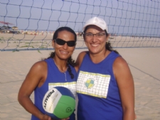 sem vir para as aulas”, comenta a Sandra. A jogadora comenta que a estratégia tem dado certo e os alunos têm cada vez mais se aperfeiçoado no esporte. Mônica (esq) e Sandra, criadoras do Vôlei do Futuro