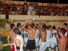 Jogadores comemoram título com a torcida, que levou a partida no grito (Foto: Portal Infonet)