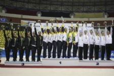 Na apresentação de 3 fitas e 2 cordas, o Brasil, com Luísa, Ana Scheffer, Ana Ribeiro, Letícia Dutra e Ana Paula Alencar, somou 21,600. A sequência no pódio se repetiu, com Argentina com a prata (18,050) e Chile com o bronze (14,650).
