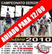 A 3ª Etapa do Campeonato Sergipano de Bicicross, que aconteceria no próximo final de semana, na pista que fica na rótula do Conjunto Orlando Dantas, foi adiada por motivos técnicos para o dia 12 de setembro. Mas para os principais atletas Sergipanos não ficarem parados, eles vão participar da Copa Brasil 2010 que acontece em Feira de Santana na Bahia no dia 1º de agosto.