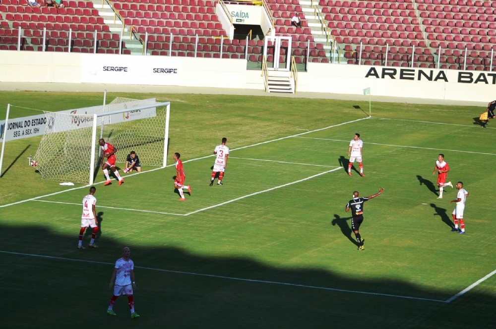 E aos 36, quando a torcida alvirrubra já estava satisfeita com o resultado, Vicente disparou pela esquerda, cruzou e Hiago mais uma vez empurrou para dentro das redes para fechar a conta: Sergipe 5 a 0.