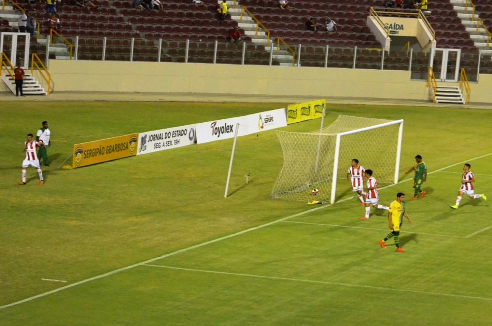 Aos 25, no auge da pressão, Amilton mandou um petardo de fora da área e assustou o goleiro João Ricardo, que só observou a bola sair pelo lado. No lance seguinte, Quirino respondeu com uma conclusão de primeira, mas a bola subiu demais. Mas o Estanciano, que seguiu pressionando, foi enfim recompensado: aos 36, após cobrança de escanteio, a bola passou por todos e chegou em Missinho, que cabeceou pra dentro – 1 a 1.