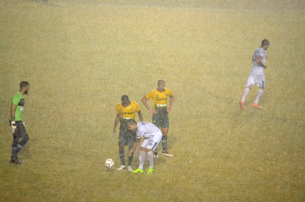 | Dilúvio: chuva apertou em vários momentos da partida |