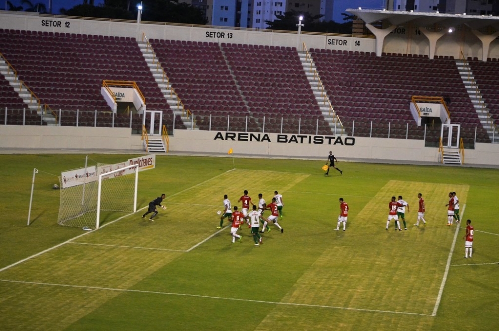 Pouco antes do fim do primeiro tempo, o Sergipe ainda teve a seu favor um tiro livre indireto dentro da área do Murici – após recuo da zaga para o goleiro. Mas Arruda cobrou em cima da barreira – formada por quase todo o time alagoano.
