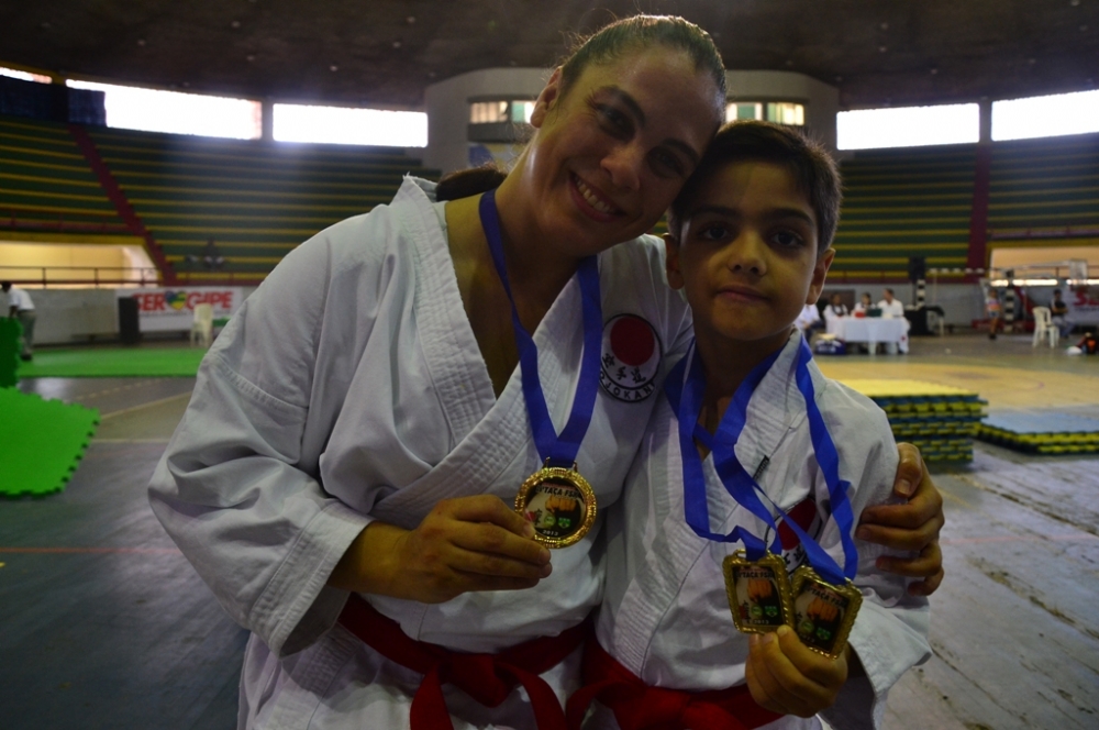 “Quando você treina todo dia, um dia a menos faz seu desempenho cair muito. Então procuro participar de muitos campeonatos. Estou sempre procurando avançar”. Outro representante da família a garantir medalha foi Akio Soares. Filho de Katiane e do sensei Enio Silva, o alagoano faturou o primeiro lugar no Kata e no Kumite na categoria mirim. Orgulhoso, o pai enumerou o extenso currículo de títulos do pequeno. “Ele já foi bicampeão alagoano, campeão do Nordeste e campeão regional. E a partir daqui de Aracaju vamos atrás de mais conquistas em competições interestaduais”.