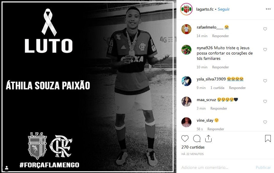 O incêndio aconteceu nesta sexta-feira em uma parte antiga do centro de treinamento do Flamengo, o Ninho do Urubu. O local servia de alojamento para as categorias de base. Até o momento, 10 pessoas morreram e três estão em estado grave. Entre as vítimas fatais está o sergipano Áthila Paixão, de 14 anos. Natural de Lagarto, Áthila era atacante e foi aprovado no Clube de Regatas do Flamengo após ter sido visto atuando na Copa Zico e ter chamado a atenção dos principais clubes do Rio de Janeiro.