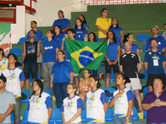 Se no centro do ginásio Constâncio Vieira, em Aracaju, eram os ginastas que impressionavam com seus movimentos, na arquibancada foi a torcida aracajuana que deu um show de empolgação. Vestidos com camisetas azuis dadas pela Caixa, patrocinadora do Campeonato Panamericano de Ginástica, os sergipanos levaram bandeira do Brasil e o grito de incentivo aos atletas na ponta da língua. (Foto: Portal Infonet)
