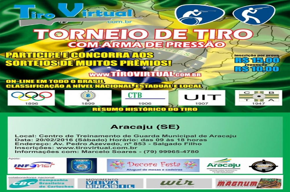 As inscrições para a etapa de número 50 ficam disponíveis pelo site até às 23h desta sexta-feira, 19, pelo site do Tiro Virtual. No entanto, os interessados poderão também fazer a inscrição no local do evento. No sábado, 20, a etapa acontece em Aracaju das 9h às 18h no centro de treinamento da Guarda Municipal [Av. Pedro Paes Mendonça] e no domingo, 21, a etapa acontece em Itabaianinha, na quadra do antigo colégio Cenecista, no mesmo horário.