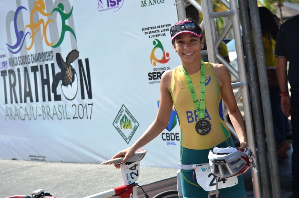 Só o primeiro dia de Mundial Escolar de Triathlon na Orla da Atalaia já foi suficiente para que o Brasil superasse todo o seu desempenho na última edição do torneio. Na manhã desta sexta-feira, 9, dia de competições individuais, os brasileiros conquistaram três medalhas: um ouro e um bronze na categoria feminina 15-16 anos e um bronze na categoria masculina 17-18 anos. Na última participação brasileira, em 2015, a delegação havia conquistado apenas um bronze por equipes.