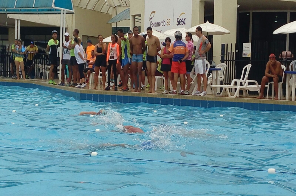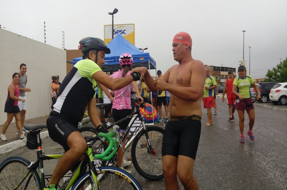 Acostumados, os atletas associados do Sesc disputam as ruas com os veículos automotores, bicicletas e outros pedestres para cumprir todas as etapas do Triathlon de Revezamento promovido pela entidade como forma de incentivar e difundir a prática esportiva entre a comunidade de Nossa Senhora do Socorro. Cerca de 60 atletas participaram do treinamento, segundo informações do líder de lazer do Sesc, Thiado Rebelo.