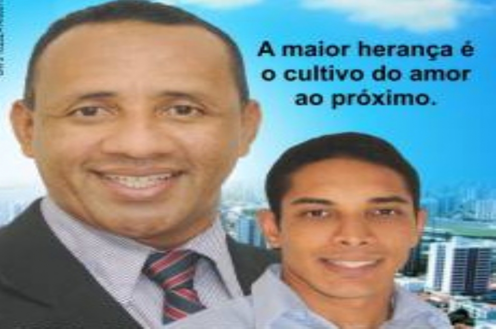 | Adelson Barreto ao lado do filho afetivo (Foto: Reprodução Cartaz campanha) |