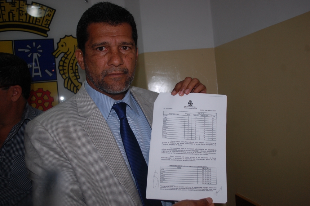 Agamenon Sobral exibe documentos cedidos pelo TCE com relação de médicos (Fotos: Portal Infonet) |