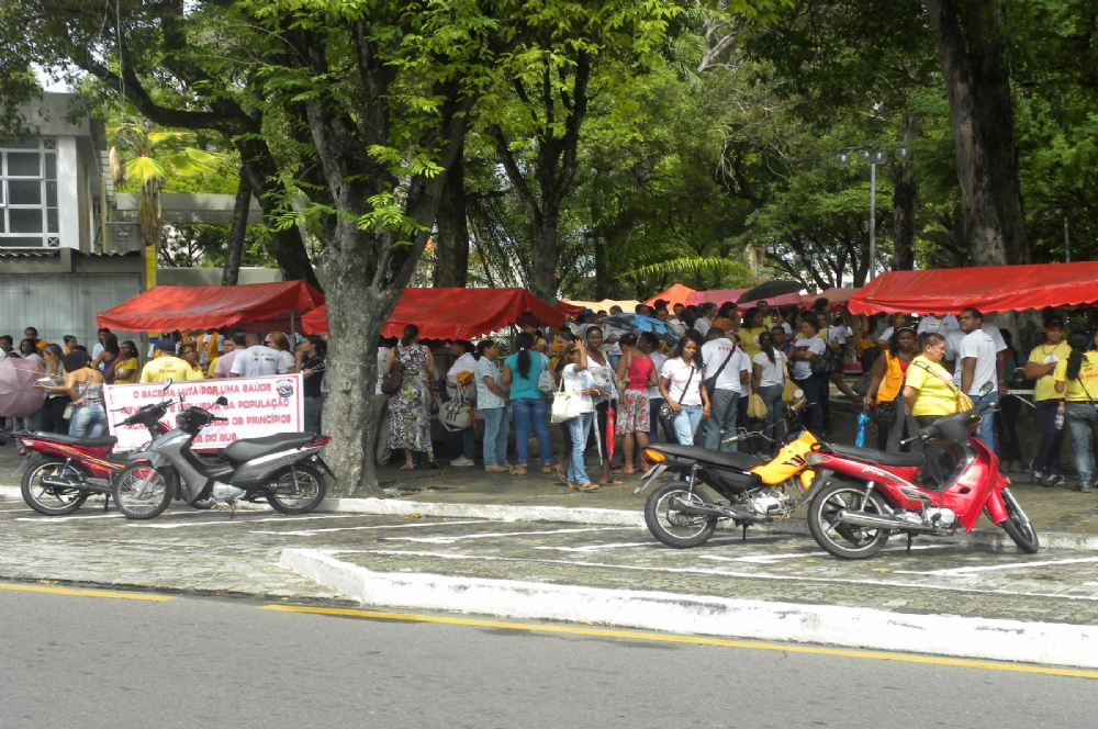 Os agentes comunitários de Saúde e Endemias lotaram a Praça Olímpio Campos para cobrar ainda o pagamento integral do protetor solar.