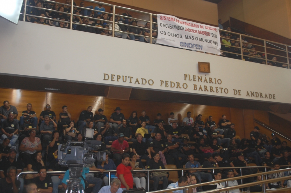 Agentes penitenciários retornaram às galerias da Assembleia Legislativa de Sergipe na tarde desta segunda-feira, 9, para pedir apoio aos deputados quanto à serem recebidos pelo Governo do Estado. Na ocasião, os parlamentares formaram uma comissão para intermediar o diálogo e o deputado Jeferson Andrade garantiu que na próxima quarta-feira, 11, o secretário-chefe da Casa Civil, José Sobral.