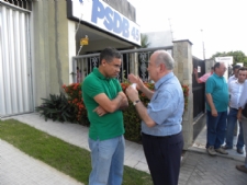 Antes da coletiva, uma conversa com o representante do PV