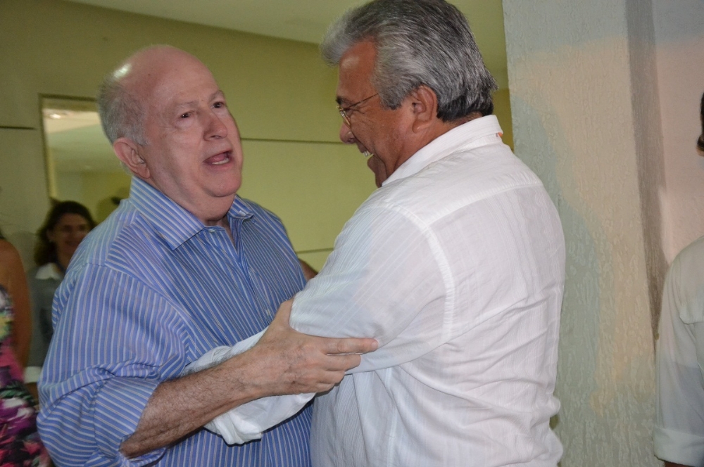 | Almeida recepcionado pelo empresário Albano Franco antes do debate (Fotos: Cássia Santana/Portal Infonet) |