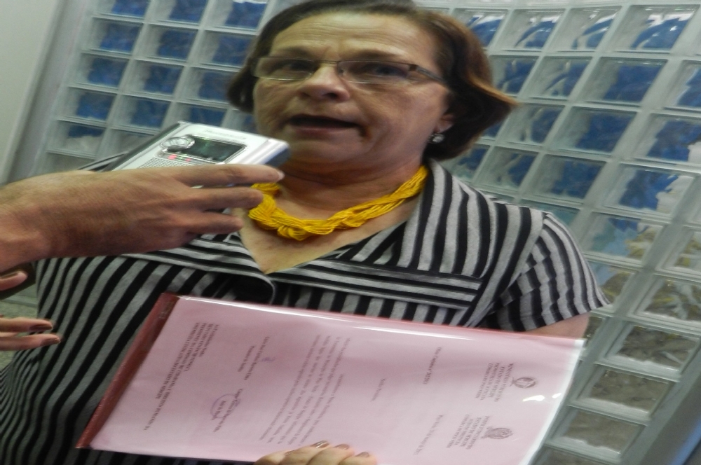 | Ana Lúcia apresenta cópia do dossiê aos deputados (Foto: Portal Infonet) |