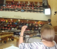 Solidária e militante da luta dos professores de Sergipe, na tribuna, a deputada estadual Ana Lúcia conclamou para que a Assembleia Legislativa do Estado, através da Comissão Parlamentar de Educação, passe a mediar o conflito de forma a abrir o diálogo entre os professores, representados pelo Sintese, e que tem apoio da CUT/SE, e o gestor municipal.