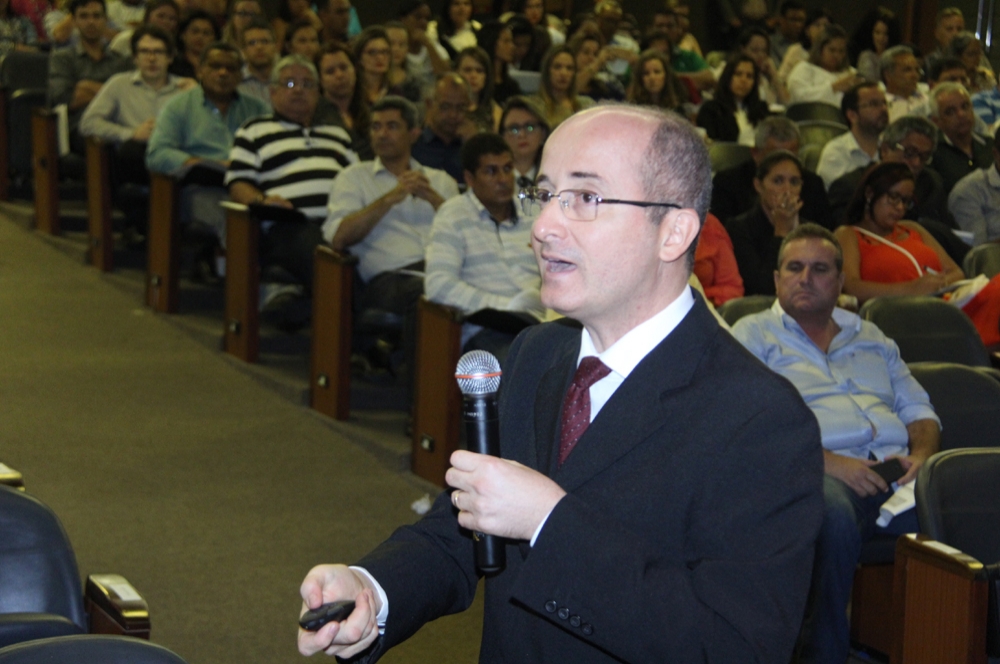 Logo em seguida, Marcos Souza apresentou sua palestra sobre a LRF. Fez uma análise para introduzir os gestores e servidores presentes ao tema apresentado e apontou as regras a serem seguidas e as punições as quais os governantes são passíveis no caso de não cumprimento da Lei de Responsabilidade Fiscal.