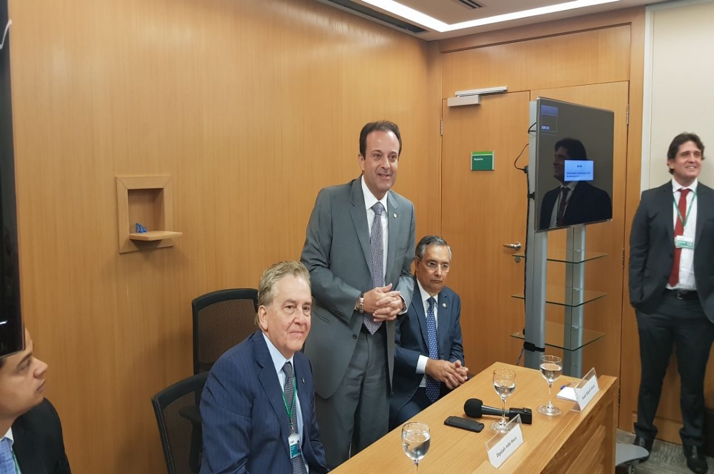 Na opinião de Paulo Rabello de Castro, presidente do Banco Nacional de Desenvolvimento Econômico e Social (BNDES), esta quarta-feira, 21, foi “um dia histórico, um marco para Sergipe”. Ele se referia à linha de crédito de meio bilhão de reais para os municípios sergipanos liberada atendendo uma solicitação do deputado federal André Moura (PSC). Realizada na sede da instituição em Brasília, a cerimônia contou com a presença do senador Eduardo Amorim (PSDB).