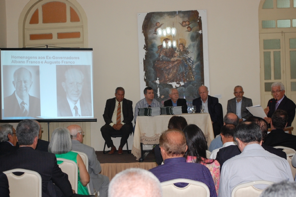 Os ex-governadores Augusto Franco e Albano Franco foram os homenageados do mês de dezembro em mais uma edição do projeto Aniversário dos ex-governadores. O evento realizado na tarde desta segunda-feira, 3, no Palácio Museu Olímpio Campos contou ainda com a apresentação do livro ‘O Legado Desenvolvimentista do Governo Augusto Franco’ e com apresentação do grupo "Música de Câmara", da orquestra sinfônica de Itabaiana.