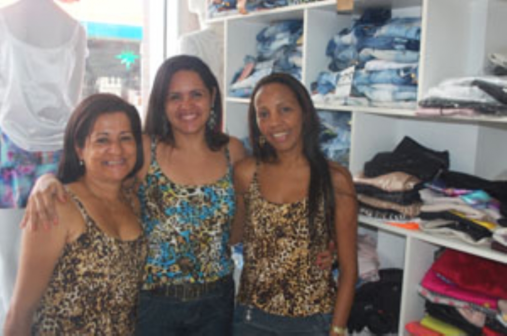 Solange (à dir) comemora faturamento com colegas vendedoras |