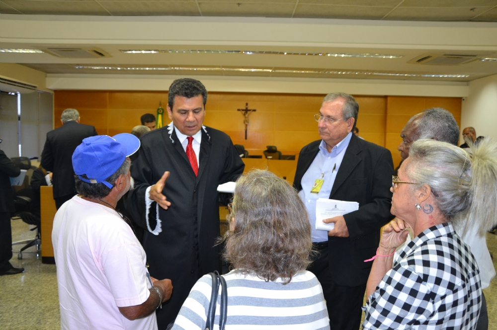 | Uluces Andrade com aposentados: resposta na segunda-feira (Foto: Cássia Santana/Portal Infonet) |