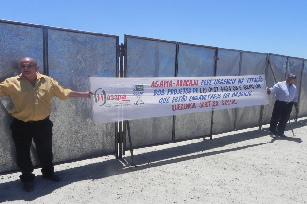 Na tarde desta terça-feira, 29, representantes da Associação dos Aposentados e Pensionistas de Aracaju levaram faixas para sensibilizar a presidente Dilma Rousseff quanto ao fim do fator previdenciário e o reajuste acima da inflação para os que recebem acima de um salário mínimo.