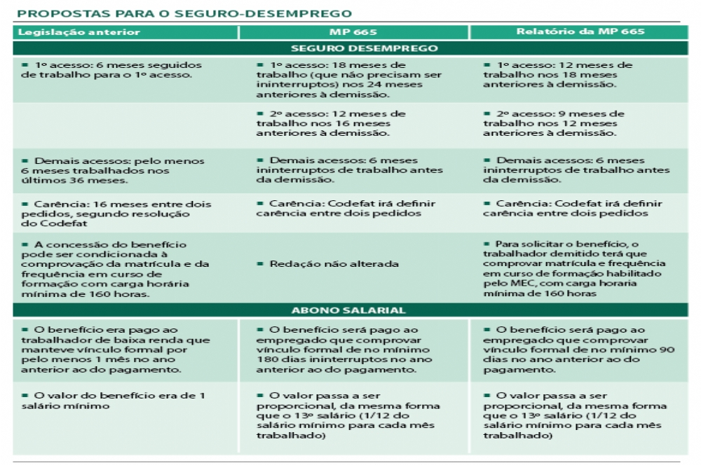 A MP muda a quantidade de meses trabalhados antes da demissão que o trabalhador terá de comprovar para solicitar o seguro-desemprego. Pelo texto aprovado, na primeira solicitação, o trabalhador precisará comprovar o recebimento de salários em, pelo menos, 12 meses nos 18 meses anteriores à data da dispensa.