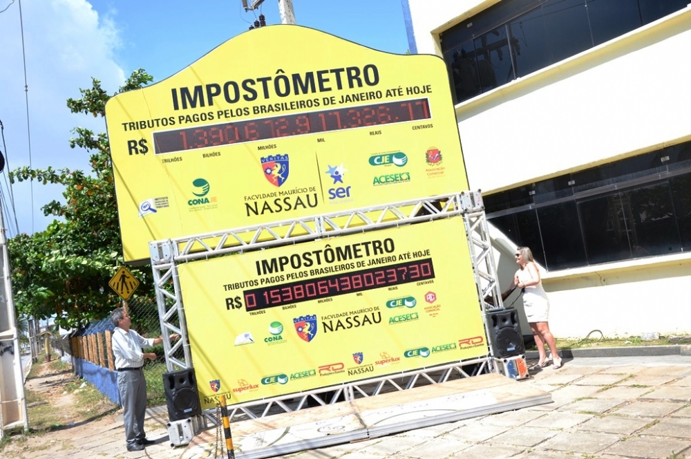 Quase R$ 1,4 trilhão. Com incríveis 13 dígitos, o valor representa o que é arrecadado no Brasil em impostos, e para escancará-lo á população, uma faculdade inaugurou em Aracaju o oitavo “Impostômetro” do Brasil. Espécie de placar em tempo real com a soma total de tributos do país, o medidor foi inaugurado na manhã deste sábado, 12, em frente à Faculdade Maurício de Nassau, na Coroa do Meio.