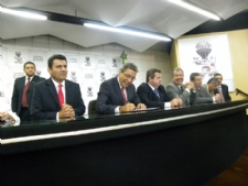 O governador Marcelo Déda (PT) assinou em solenidade no Palácio dos Despachos na tarde desta quinta-feira, 14, o decreto de posse do conselheiro Ulices Andrade no Tribunal de Contas de Sergipe (TCE). Lembrando o empresário Oviêdo Teixeira em seu discurso, Ulices Andrade disse que “a gratidão é a mãe de todas as virtudes e o homem que não carrega o valor da gratidão, não carrega nada”. Marcelo Déda assina o decreto (Fotos: Portal Infonet)