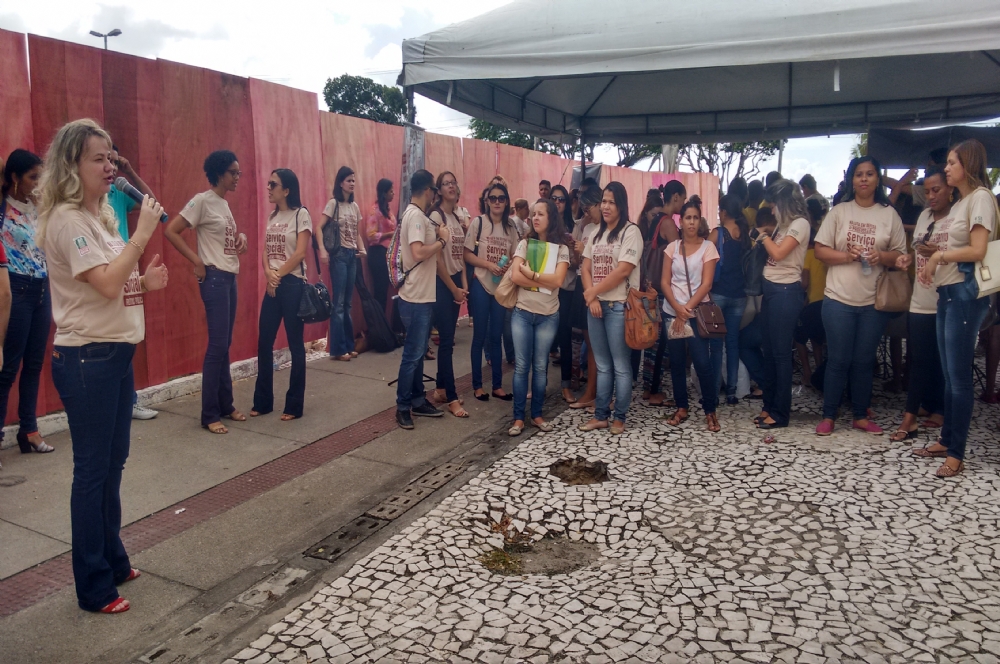 Estudantes e profissionais de serviço social de todas as regiões do Estado participaram, na manhã desta quinta-feira, 12, do ato público “Na luta pelo Fortalecimento do Serviço Social e das politicas sociais”, em frente a Assembleia Legislativa de Sergipe. A manifestação, que integra a Semana do/a Assistente Social, é uma realização do Conselho Regional de Serviço Social 18a. Região – Sergipe (CRESS).