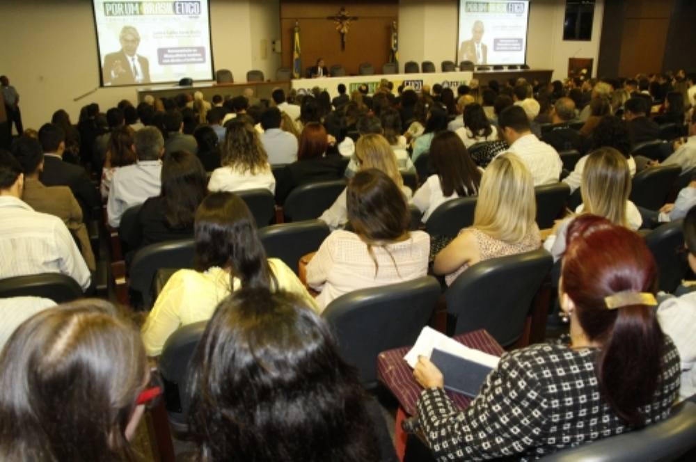 Servidores e gestores públicos, estudantes universitários, autoridades e representantes de diversas instituições lotaram o auditório do Tribunal de Contas do Estado (TCE) na manhã desta segunda-feira, 19, para assistir à palestra "Ética na Administração Pública", proferida pelo ministro aposentado do Supremo Tribunal Federal (STF), Carlos Ayres Britto. Foi a primeira explanação de uma série prevista no Fórum "Por um Brasil ético: o dinheiro público é da sua conta".