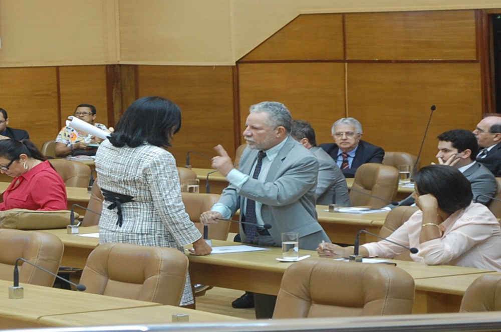 | Gualberto e Angélica em conversa sobre o Mais Médicos na sessão desta terça (Foto: Cássia Santana/Portal Infonet) |