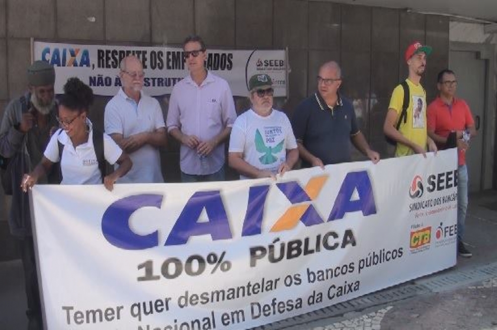 O Sindicato dos Bancários de Sergipe (Seeb) organizou um ato na manhã desta quinta-feira, 5, em frente à agência da Caixa Econômica Federal do calçadão do centro da cidade. Este é o cumprimento de uma agenda nacional, que luta contra o desmonte dos bancos públicos. Na avaliação da categoria, a transferência de passivos das instituições para o capital privado pode comprometer o atendimento à população mais carente e até a continuidade de programas sociais.