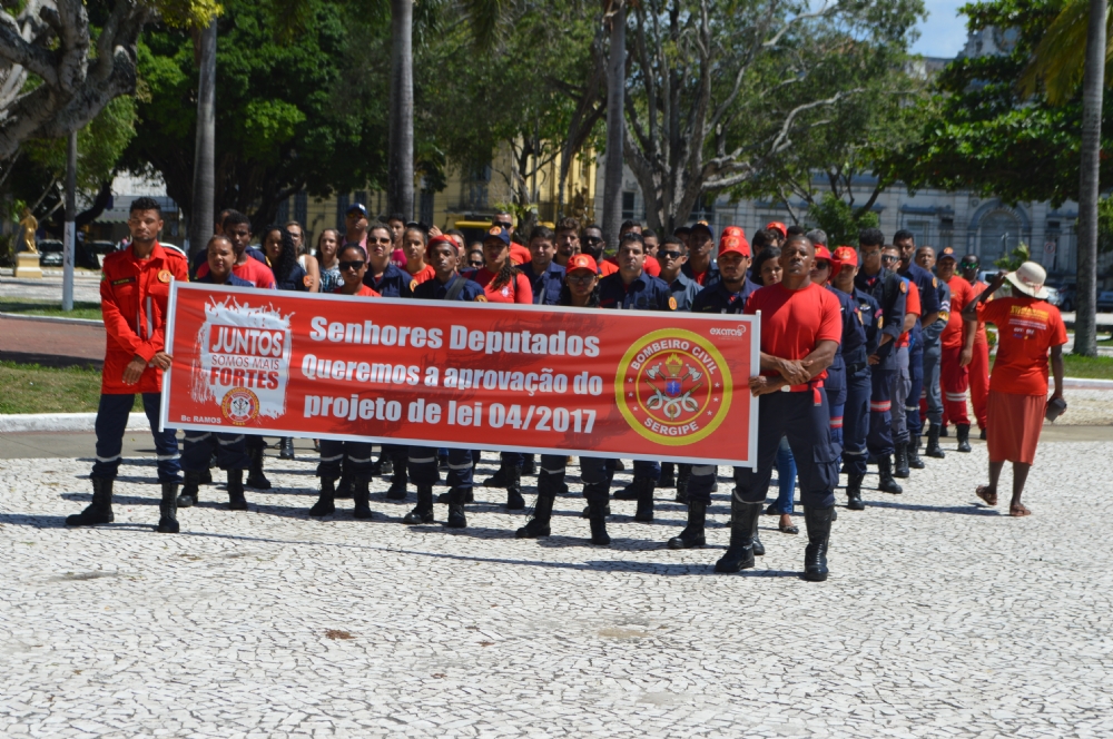 Bombeiros civis realizaram um ato na praça Fausto Cardoso e compareceram à sessão da Assembleia Legislativa de Sergipe (Alese) nesta quarta-feira, 14, para protestar contra o veto do governador Jackson Barreto ao projeto que regulamenta o exercício profissional. E o veto alega que o Projeto de Lei vai de encontro as normas técnicas e é inconstitucional.