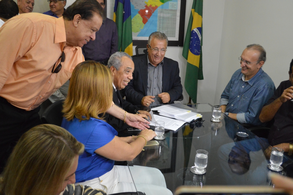 | Prefeito e secretário no momento da assinatura do projeto BRT na PMA (Foto: Arquivo Portal Infonet) |