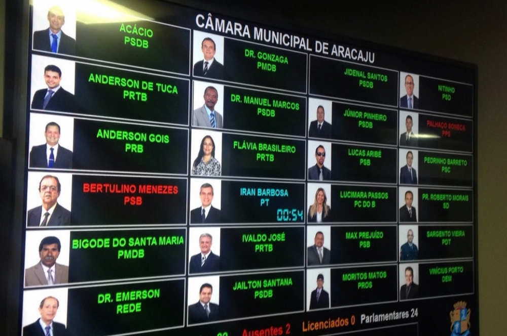 Votaram a favor da aprovação do Projeto, os vereadores Acácio (PSDB), Anderson de Tuca (PRTB), Dr. Gonzaga (PMDB), Dr. Manuel Marcos (PSDB), Ivaldo José (PRTB), Jailton Santana (PSDB), Jidenal Santos (PSDB), Junior Pinheiro (PSDB), Max Prejuízo (PSB), Moritos Matos (PROS), Pedrinho Barreto (PSC), Pastor Roberto Morais (SD) e Sargento Vieira (PDT).