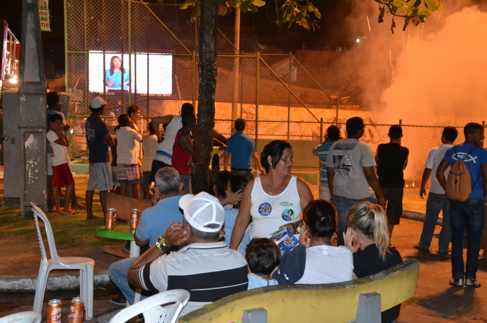 Do lado de fora da emissora, o clima de festa entre cabos eleitorais de diferentes coligações predominou. Um grupo de moradores do bairro assistiu ao debate por um telão instalado na praça, próximo à sede da emissora, enquanto os cabos eleitorais promoviam um espetáculo à parte, agitando bandeiras e soltando fogos de artífico. Apesar do clima tenso em decorrência dos ânimos das torcidas organizadas, a polícia não registrou incidentes graves, segundo informações do tenente-coronel Vivaldy Cabral, comandante do Oitavo Batalhão da Polícia Militar.