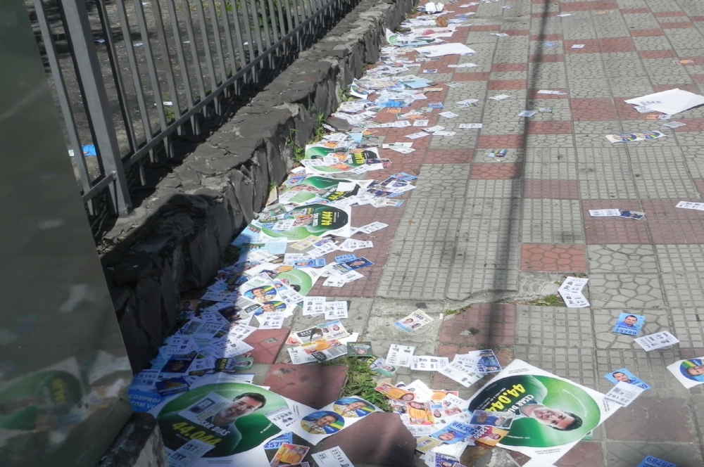 No Colégio Atheneu Sergipense, o clima foi de festa. Mas de festa marcada pela falta de consciência dos ‘cabos eleitorais’, que transformaram o local em uma lixeira, tamanha a quantidade de santinhos espalhados por toda a calçada e pátio do estabelecimento de ensino.