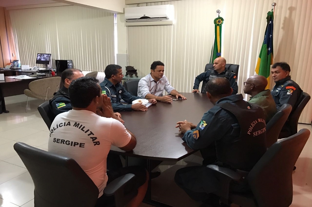 O deputado estadual Capitão Samuel participou de uma reunião com o Comandante Geral da PMSE, Cel Marcony Cabral, e com uma comissão de Praças. A reunião teve o objetivo de buscar uma solução para os profissionais que estão sendo prejudicados por conta do comportamento pós condenação (presunção de inocência).