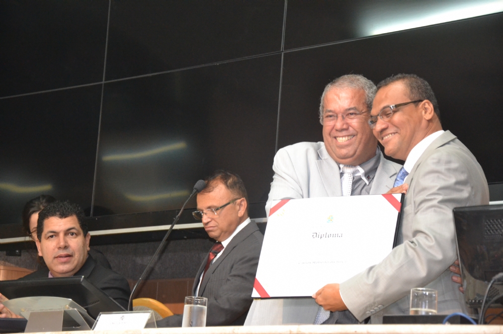 | Emmanuel entrega título a Carlos Cauê (Foto: Cássia Santana/Portal Infonet) |